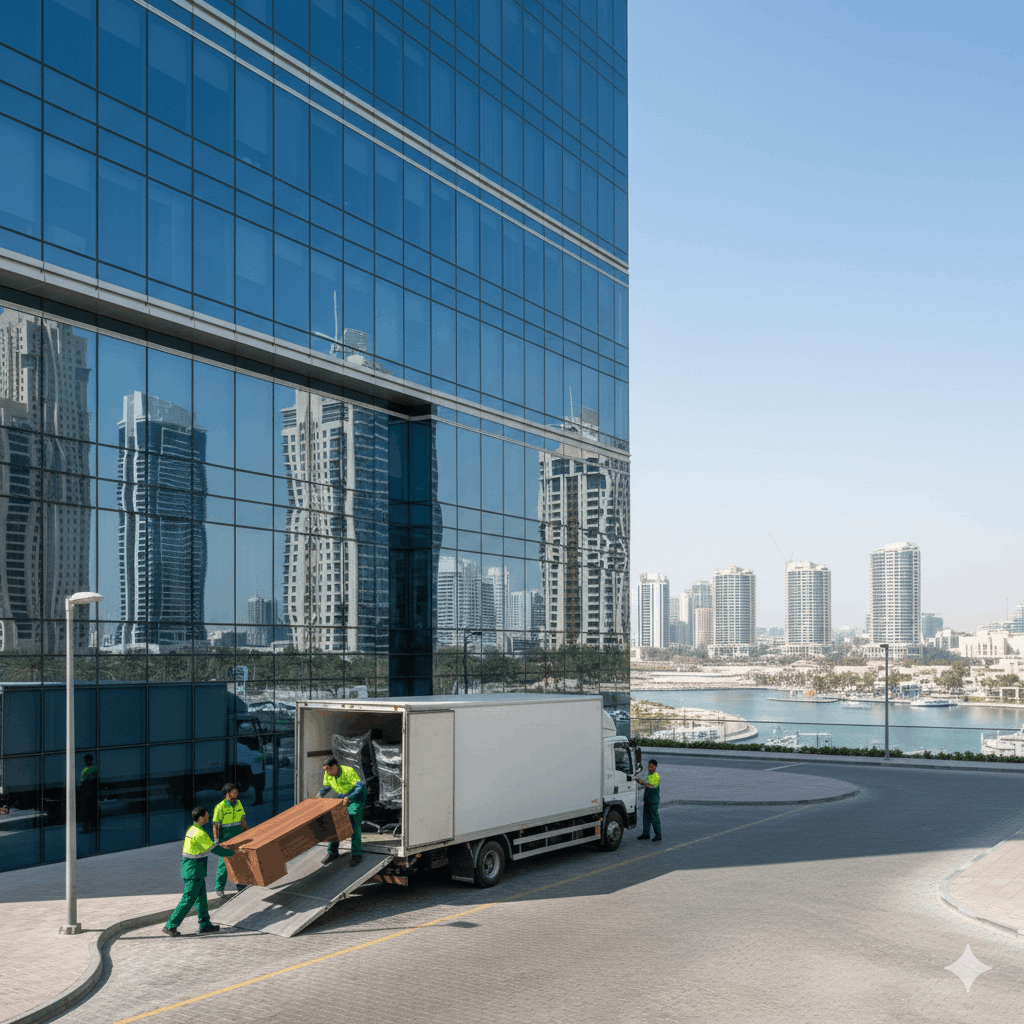 Max Move handles business tower office transfers in JLT with structured equipment handling, secure transport, efficient workspace setup.
